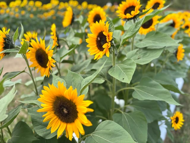 Outside, Holt Orchard’s flower fields were in full glory. Tall sunflowers stood proudly by the roadside, while rows of zinnias, astilbe, and cosmos filled the space behind them in a painter’s palette of color. It’s a beautiful photogenic spot in Flat Rock — one of my favorite photos of Lauren was taken here last year next to the pond.